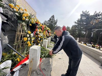 松柏苍翠,丰碑耸立。东胜烈士陵园记载着席尼喇嘛、马良诚、奇金山等166位革命烈士的英名和功绩。在庄严肃穆的纪念碑前,全体人员怀着无比崇敬的心情,整齐列队、肃立默哀、敬献花束、鞠躬致敬,深切缅怀革命先烈。随后,大家缓步绕行,依序瞻仰革命烈士谱碑厅,并分享了席尼喇嘛等鄂尔多斯革命烈士故事,追寻先烈们的足迹,重温历史,寄托哀思。